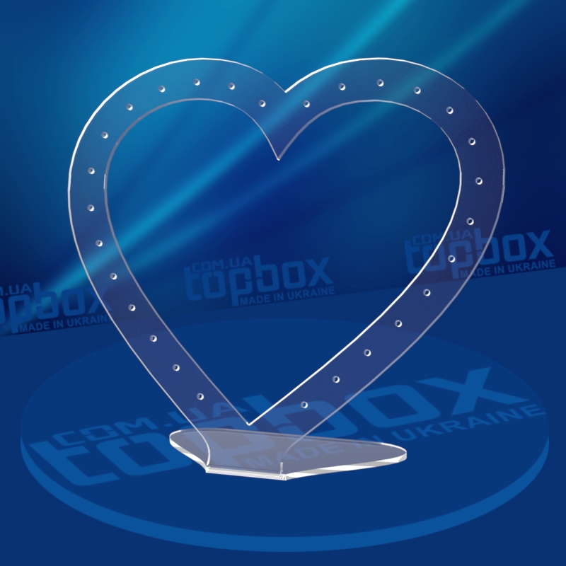 Підставка під сережки у формі серця. Материал – Акрил прозорий товщиною 2 мм. Розміри підставки (ширина/висота): x мм